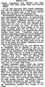 Lalbahadur was awarded the Military Cross for leading this action, the citation for which is shown below.